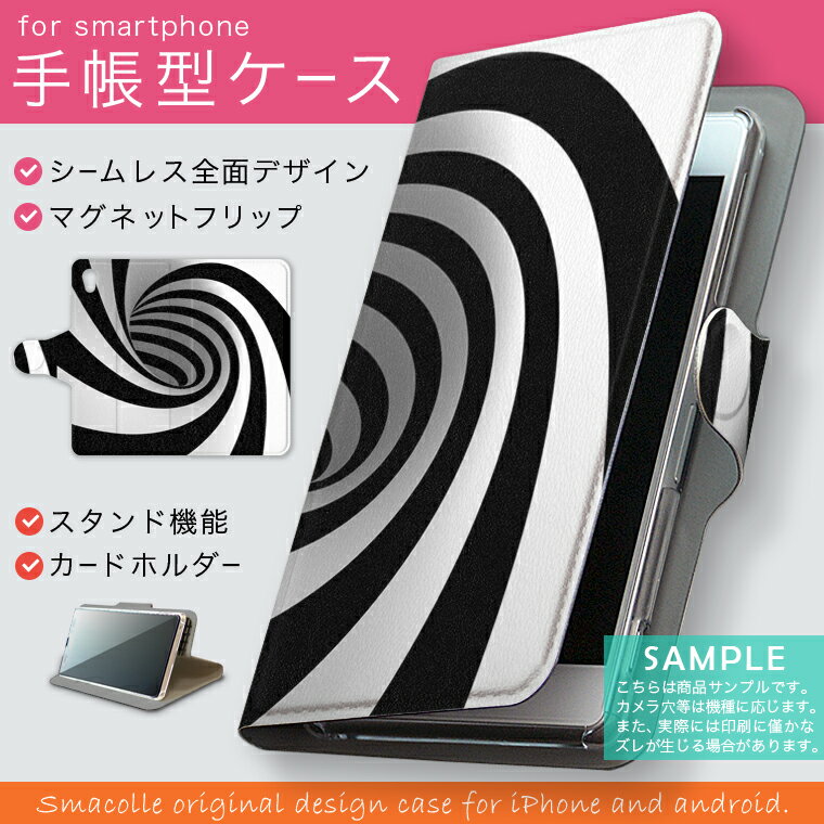 503KC DIGNO E ディグノ ymobile ワイモバイル スマホ カバー 手帳型 全機種対応 あり カバー レザー ケース 手帳タイプ フリップ ダイアリー 二つ折り 革 渦巻き モノクロ 錯覚 その他 000303