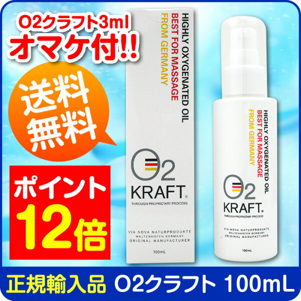 【ポイント12倍】【人気!!3mLサイズオマケ付】O2クラフトオイル100mL【メール便不可】【小型宅配便で全国送料無料】【代引きOK手数料別途加算】高濃度酸素マッサージオイル膝・腰・ふくらはぎ・肩・首筋・セルライト【正規輸入品】